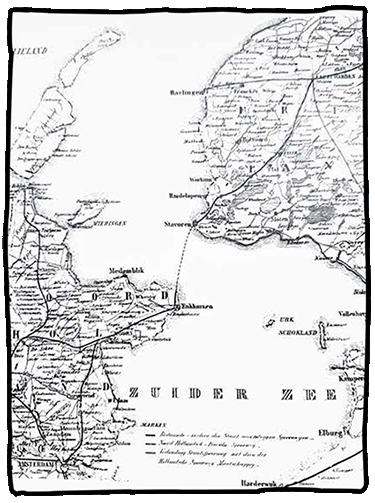 Dit was de snelste route om van Amsterdam naar Leeuwarden te reizen, in 4 uur. Dwars over de Zuiderzee voor passagiers en goederen. De schepen werden voortgestuwd met 2 raders aan de zijkant en een stoommachine op kolen.