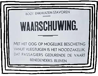 De oorlog was begonnen. Er gingen geruchten dat de bezetters in Stavoren zouden zijn. Een schip uit Enkhuizen ging polshoogte nemen, ze werden beschoten en het schip was in handen van de bezetters. In Enkhuizen werden de andere schepen van de rederij direct groen geschilderd, zodat ze vanuit de lucht minder goed zichtbaar waren in de hoop dat ze niet beschoten zouden worden. Na 2 dagen werd er van hogerhand besloten om de schepen van de rederij voor de haven van Enkhuizen tot zinken te brengen. Zo kon er niemand meer de haven in en niemand er meer uit.